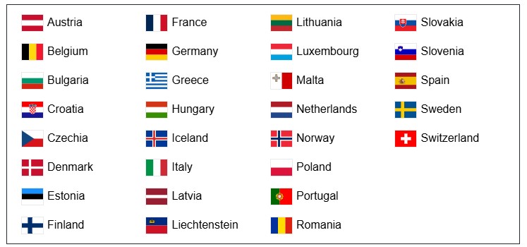 ▲오스트리아 ▲벨기에 ▲크로아티아 ▲체코 ▲핀란드 ▲프랑스 ▲독일 ▲그리스 ▲헝가리 ▲이탈리아 ▲아이슬란드 ▲네덜란드 ▲폴란드 ▲포르투갈 ▲스페인 ▲스위스 |