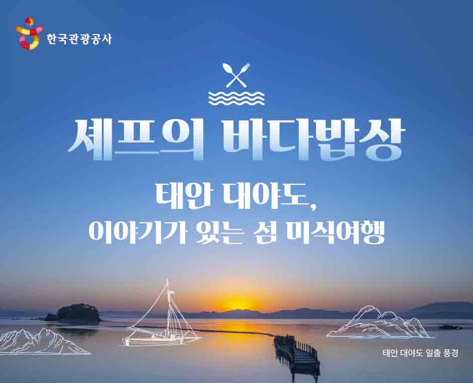 한국관광공사가 박찬일 셰프와 함께 태안 대야도로 미식 여행을 떠난다. 국내에 거주하고, 여행을 좋아하는 누구나(1팀당 최대 성인 2 소인 2(초등학생 이상)까지 가능) 신청할 수 있으며, 참가비 단 10만원(1팀 기준)에 숙박, 석식, 체험 프로그램을 모두 즐길 수 있다.