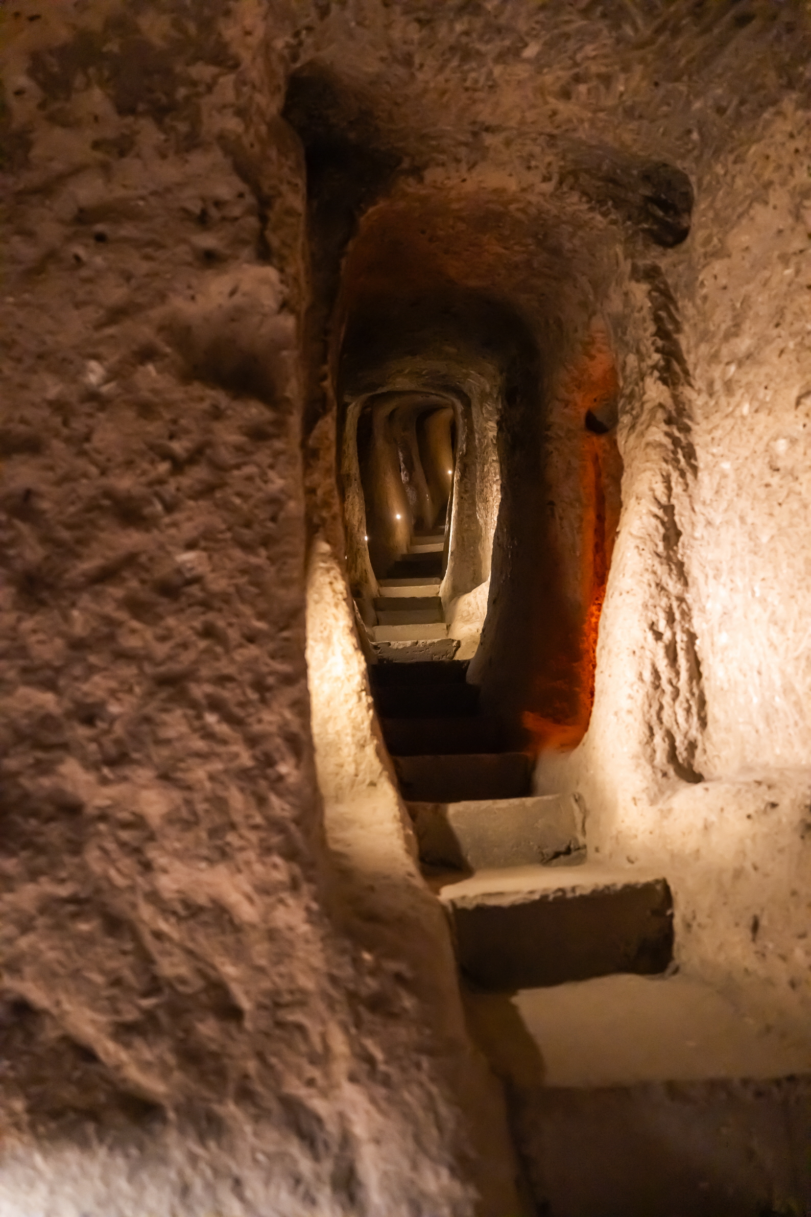 카이막클르 지하 도시(Kaymakli Underground City)는 지하 8층 깊이의 응회암 지하 도시다. 좁은 통로와 굴로 이어져 있으며, 방과 주방, 와인 저장고, 교회, 환풍구까지 갖춘 생활 공간이었다. 지상으로 도망칠 수 없던 이들은 땅속에 머물며 생존을 택했고, 척박한 땅은 오히려 그들을 품어주었다. |