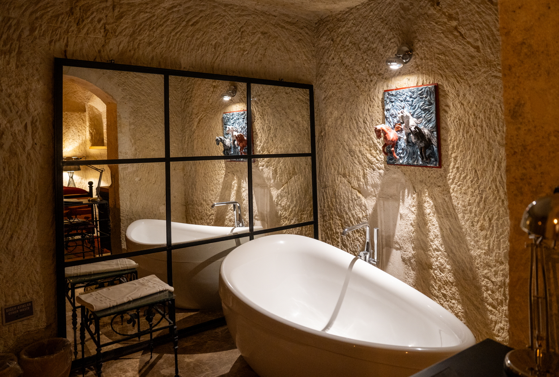 그렇기에 객실마다 구조도 다르고 인테리어도 모두 제각기 개성을 갖추고 있다. 어떤 객실은 침실에 창이 없어서 진짜 동굴 속에 있는 듯한 느낌을 주고, 또 다른 객실은 창문 밖으로 열기구가 떠오르는 모습을 감상할 수 있기도 하다. |