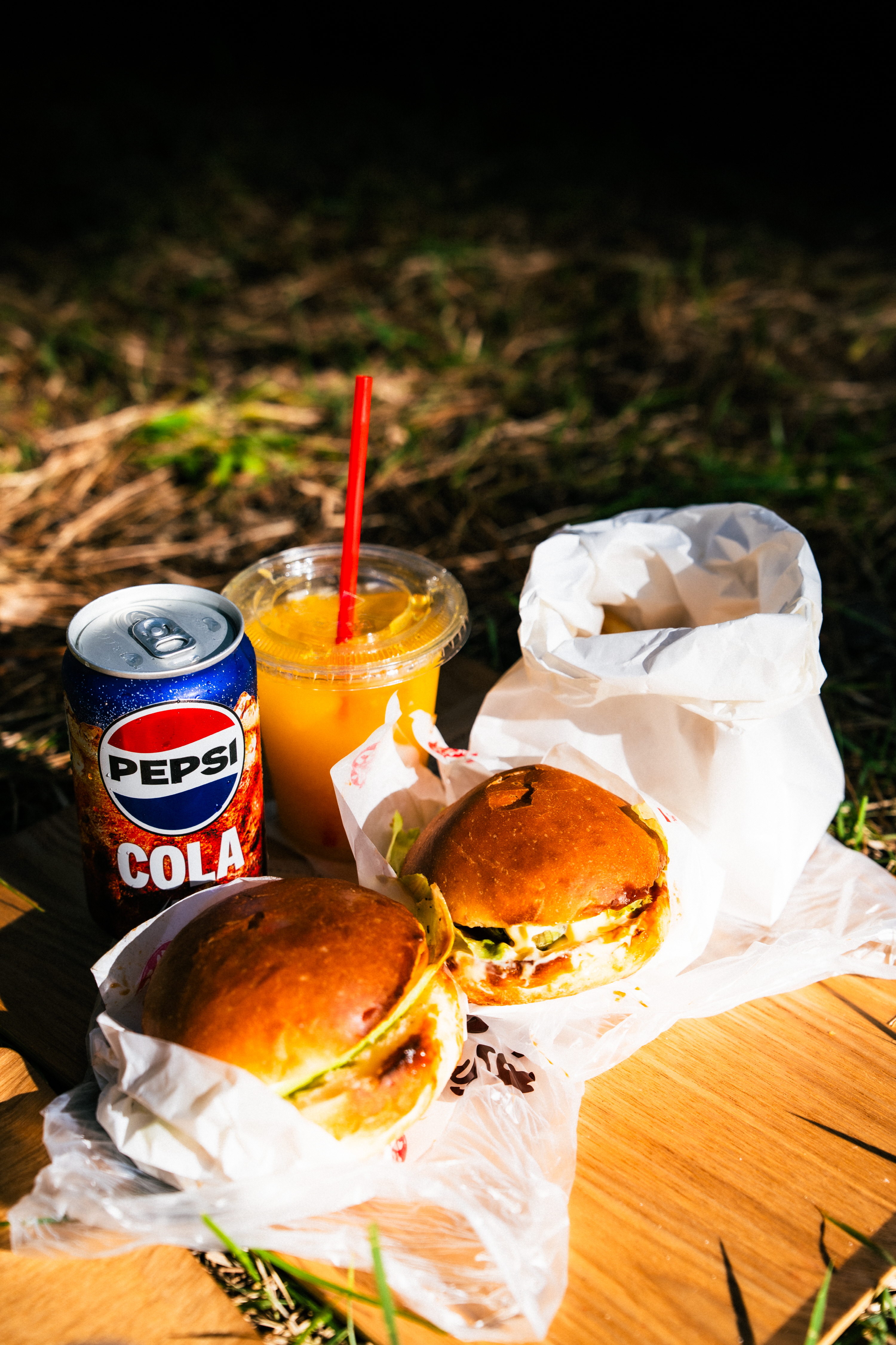 푸드트럭 형태의 레트로한 버스가 주방이고, 주차장과 소나무 숲이 좌석이다. 메뉴는 단순하다. 패티는 동일하나, 햄과 달걀, 치즈 조합에 따라 5가지 메뉴로 나뉜다. 감자튀김과 커피, 콜라, 우롱차, 오렌지 쥬스 등 곁들임도 충분하다. |