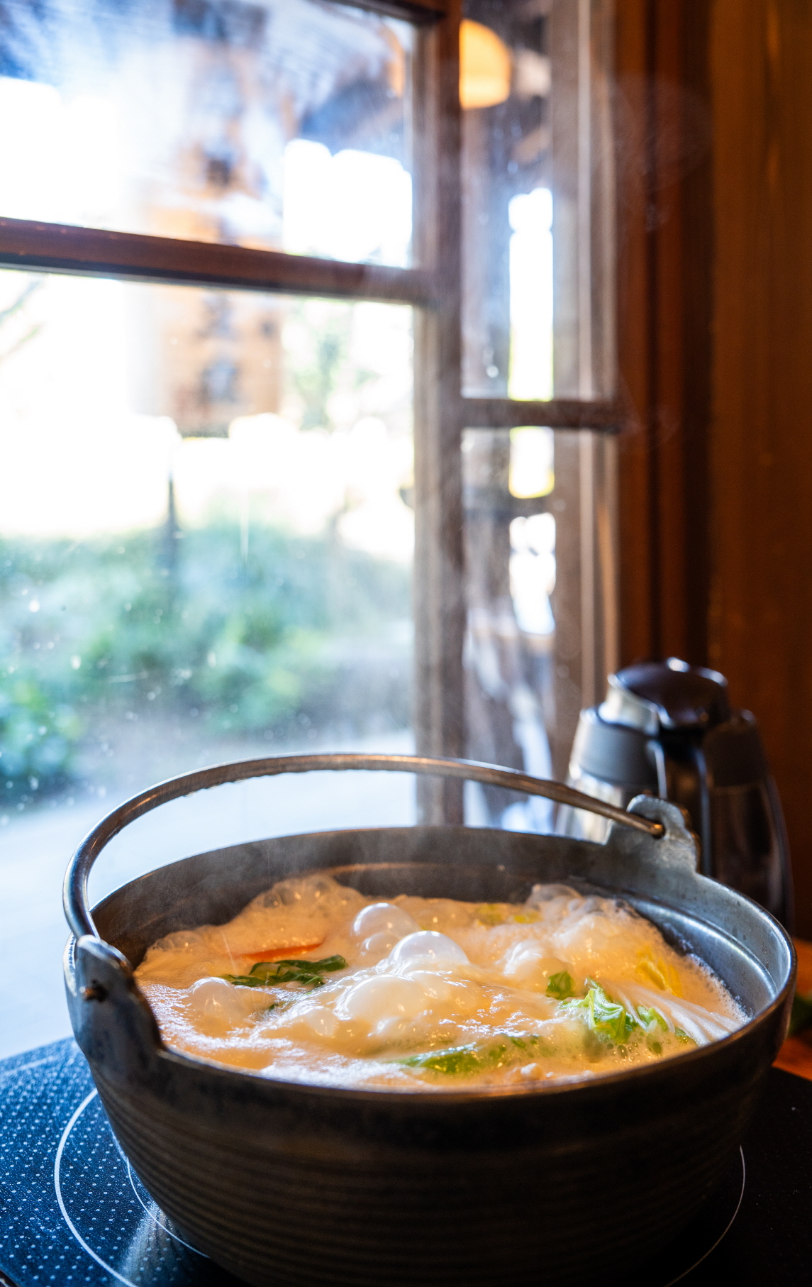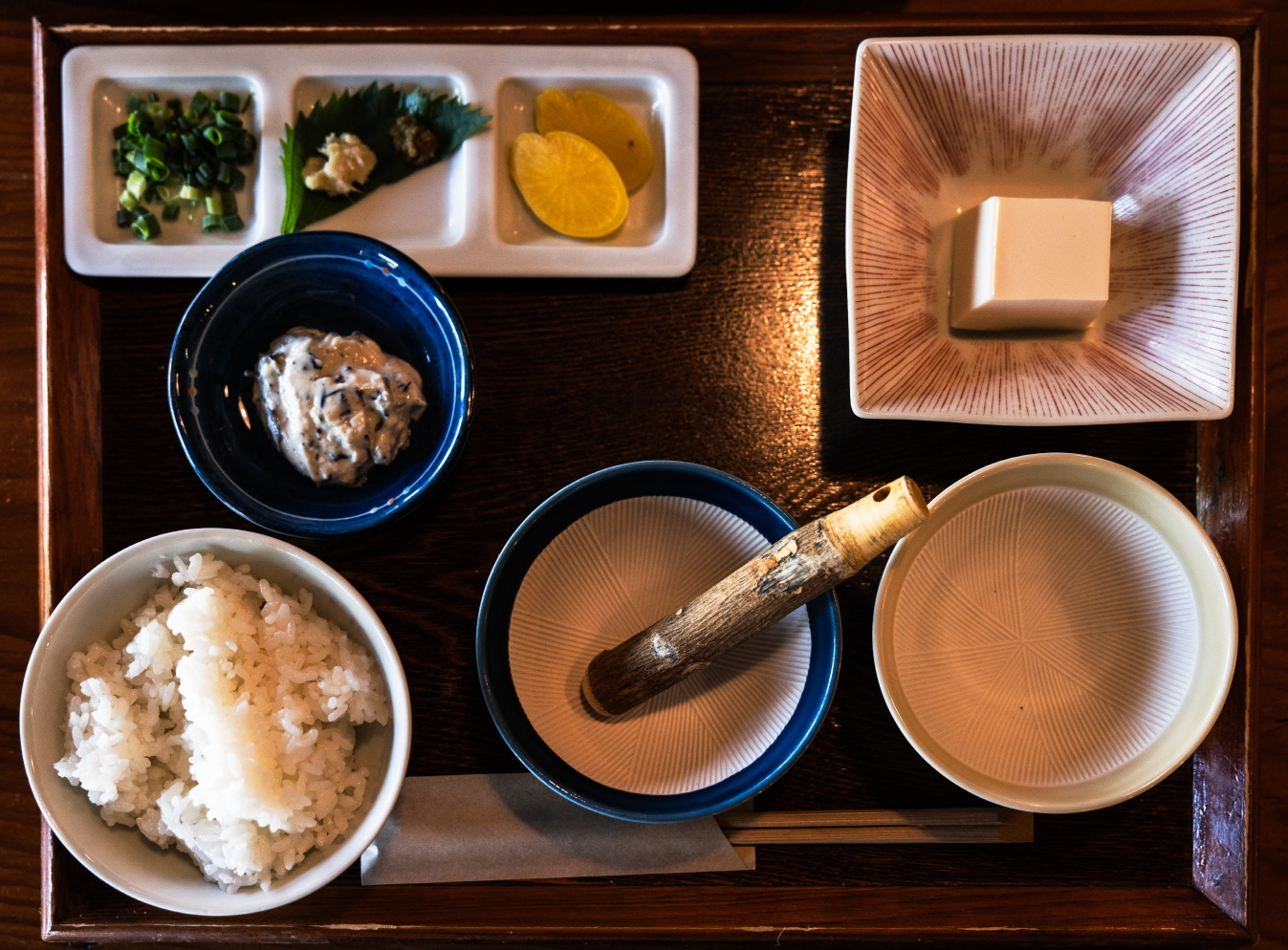 분명 두부였는데 물이 팔팔 끓으니 어느덧 수프인지 죽인지 모를 형태가 되는 뭉근한 음식. 사가는 온천수가 풍부하고, 두부의 재료인 대두도 많이 재배된다. 에도시대부터 온천수를 사용해 두부를 끓였는데, 온천수의 특수한 성질로 인해 두부가 녹아 내린다. 예부터 지역민들이 하루를 시작하는 든든한 한 끼였으며, 온천마을 투숙객도 뜨끈한 아침 식사로 맛볼 수 있었다.