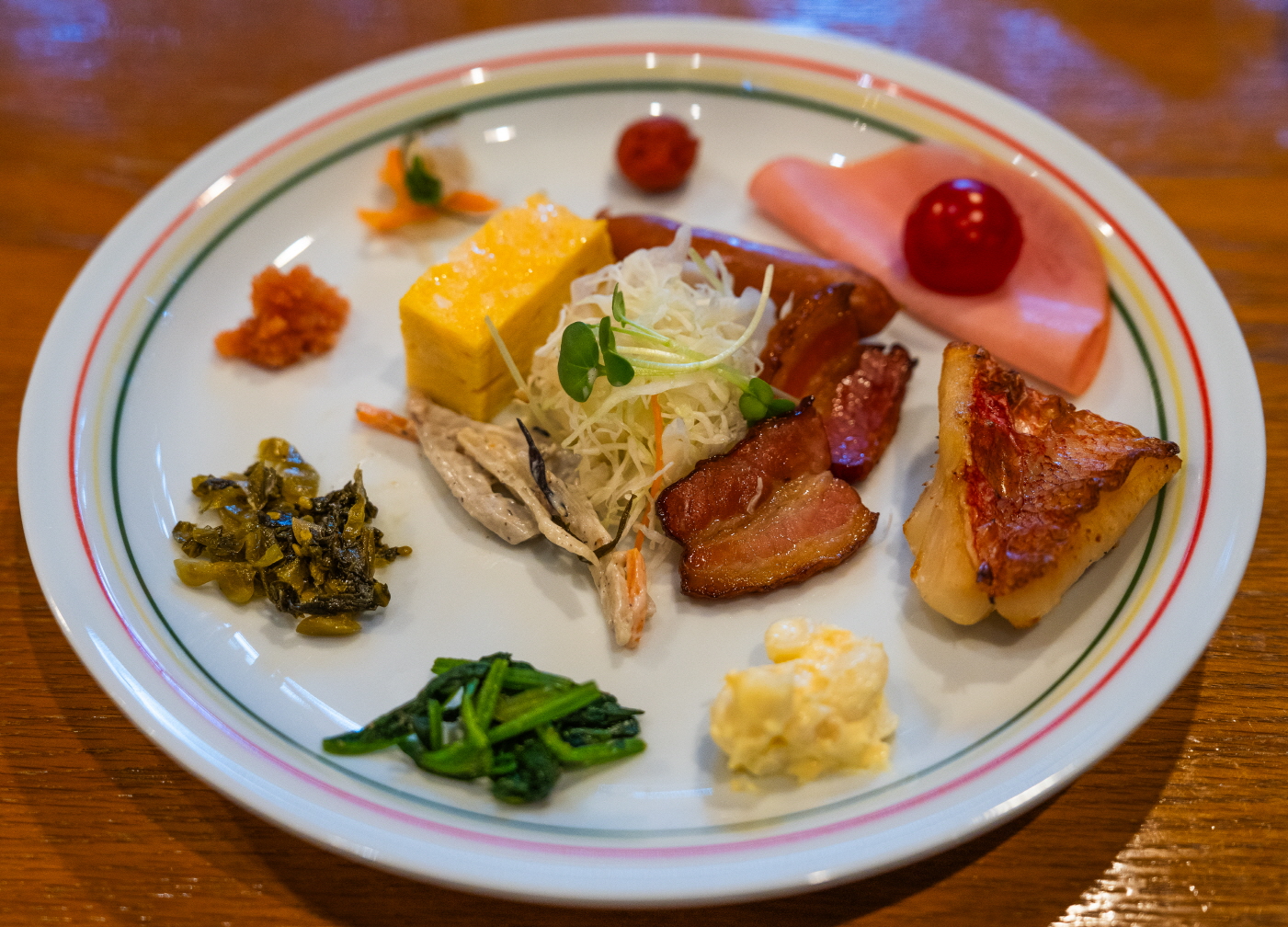 조식으로는 뷔페에서 일본 가정식을 즐길 수 있고 저녁에는 가이세키로 사가 특산물로 만든 요리를 만끽할 수 있다. |