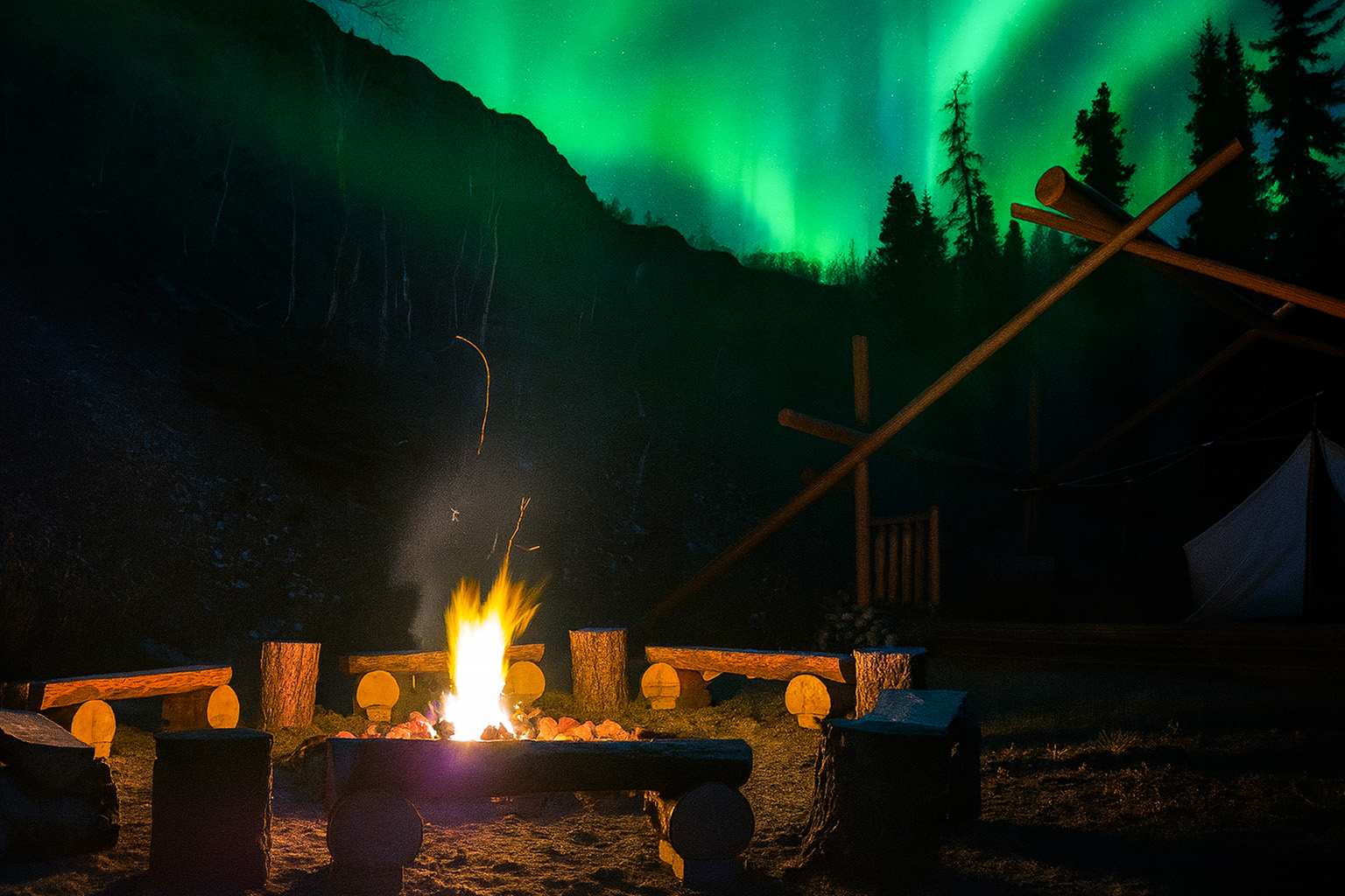 야외 모닥불 좌석과 오로라 ⓒWild Adventure Yukon |